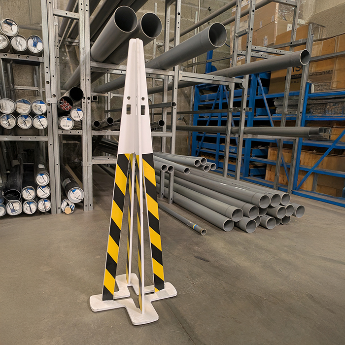 Conception et réalisations de cônes de signalisation intérieur, pour délimitation de zones. Barrières, chaînes, panneaux informatifs.